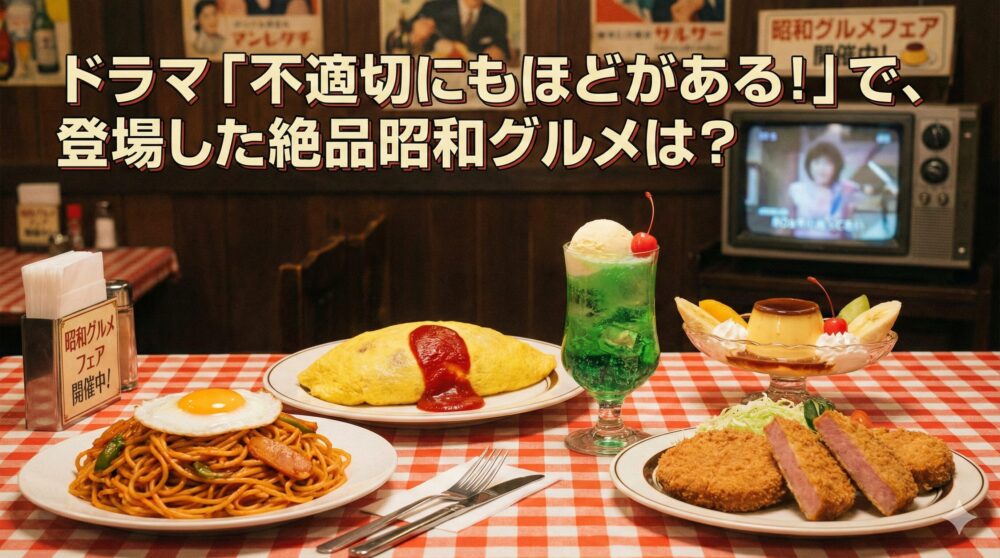 「ふてほど」の魅力は物語だけでなく、画面を彩る「昭和グルメ」や懐かしの「スイーツ」にもあります。ここでは、2026年SPでコラボ商品化された「純子の焼うどん」の再現ポイントや、喫茶店シーンに欠かせないナポリタンやクリームソーダといったメニューの魅力を深掘りします。
