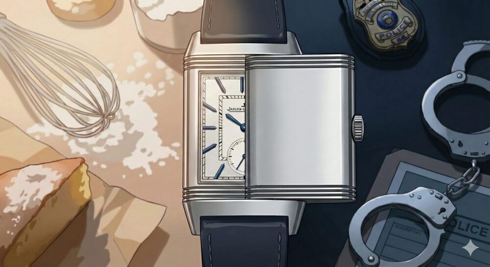 表の顔は華やかなスイーツを作るパティシエ、裏の顔は冷徹な刑事。この使い分けが、レベルソの表はクラシックな文字盤、裏返せば無地やカスタムデザインという構造に見事に合致しています。劇中でも、特に刑事・儀堂のシーンで腕時計を反転させるカットが登場し、キャラクターの切り替えを強調する演出がなされている点に注目です。