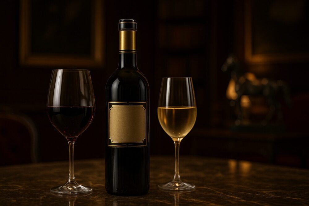 ボルドー白(例:シャトー・マルゴーのブラン、オー・ブリオン・ブラン)は、淡い黄金色と端正なラベルで“上流らしさ”を保てます。