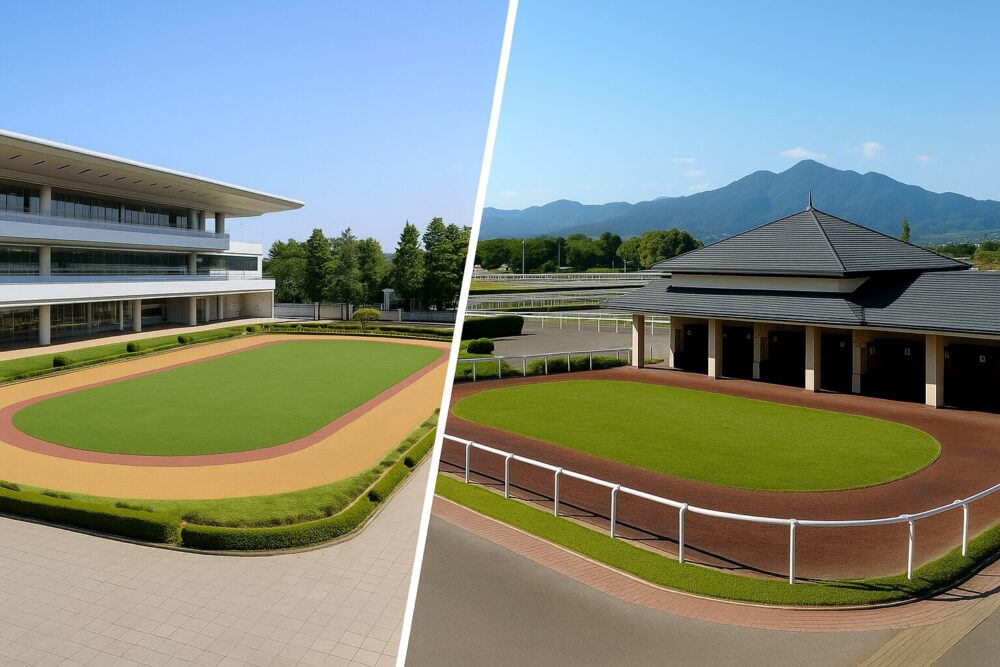 | パドック配置 | 本馬場内側寄りで奥行き広め | スタンドと近接、コンパクト | パドックからスタンドまでの距離感 |